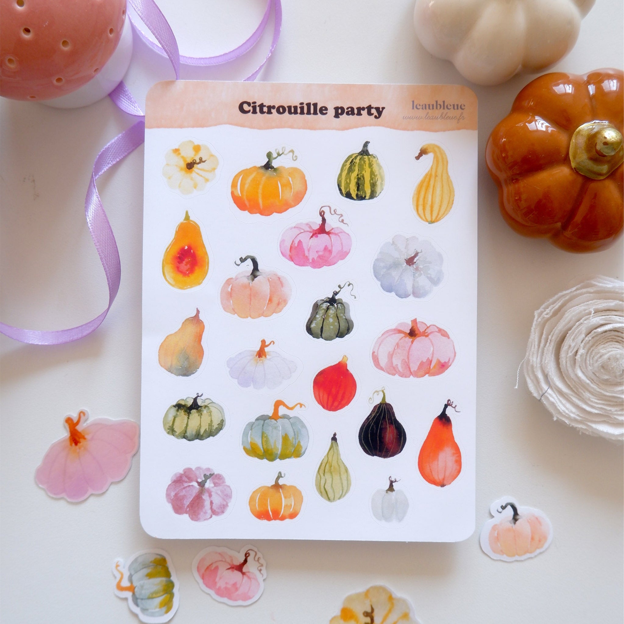 Planche de stickers d'automne. 20 stickers Cucurbitacés, à coller sur vos agendas, journaux et autres carnets. Créés spécialement pour vous apporter une petite touche de cosy et de couleurs dans votre quotidien !